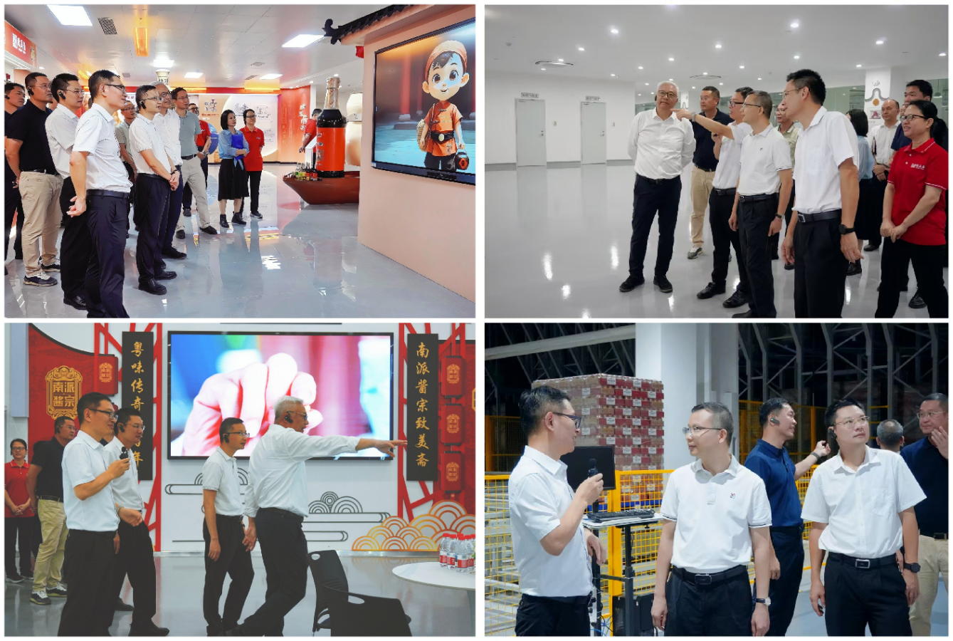 调研组一行首先深入致美斋阳西生产基地现场开展实地考察,全面直观地了解致美斋生产工艺标准、研发技术创新及百年品牌文化传承与建设情况。在生产车间,周晓炜董事长向调研组重点介绍了产品全生产周期质量控制系统。他指出,致美斋为每一款产品都赋予了专属“身份ID”,依托全球领先的WMS、WCS等系统实现从原材料采购到成品出库的全程溯源,确保每一批次产品都符合高品质标准,让传统调味品生产在数智化赋能下实现质效双提升。在产品展示厅,调研组详细了解了致美斋酱油及蚝油等核心产品的生产情况。周晓炜董事长介绍,阳西得天独厚的自然资源为调味品提供了优质的酿造环境,致美斋产品在新基地实现了自然禀赋、非遗酿造工艺与现代数智技术的美妙融合,氨基酸态氮含量显著提升。在文化展厅,一场跨越时空的交流尤为亮眼。林济远副主任与致美斋AI数字人“小致”围绕致美斋作为四百年中华老字号如何实现创新蝶变、焕新活力展开深入交流互动,生动展现了致美斋在坚守文化根脉的同时积极拥抱新技术、探索新模式的创新实践。