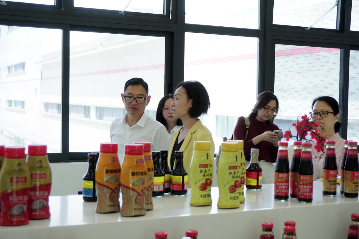白燕会长一行首先走进致美斋研发创新中心,深入了解致美斋阳西生产基地在调味品领域的核心研发成果,重点了解最新研发突破、博士工作站与味都研究院建设进展,以及30余款健康化、个性化新品开发情况。现场,先进精密仪器设备与陈列着40余项专利的专利墙互为补充,直观且具象化呈现了致美斋强劲的研发创新实力。