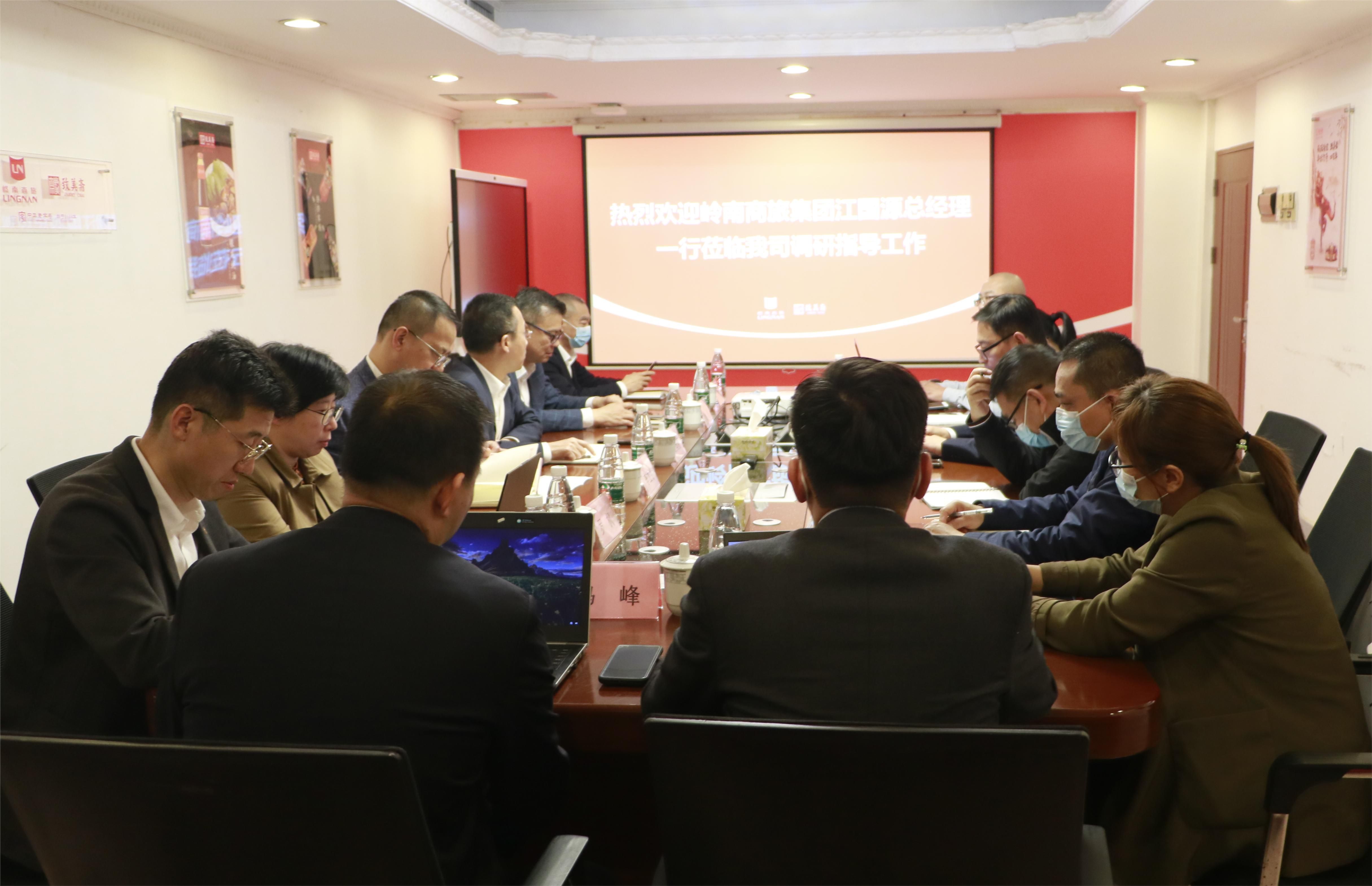 4月11日,岭南商旅集团党委副书记、总经理江国源带队莅临致美斋开展调研,了解公司当前生产经营情况和需要协调解决的问题,助推致美斋高质量发展工作迈上新台阶。集团副总经理李斌、李立令,战略与投资发展中心、研发创新与品牌管理中心、经营管理中心等主要负责人参加调研。致美斋酱园党总支书记、董事长周晓炜等班子领导、相关部门负责人参加座谈会议。
