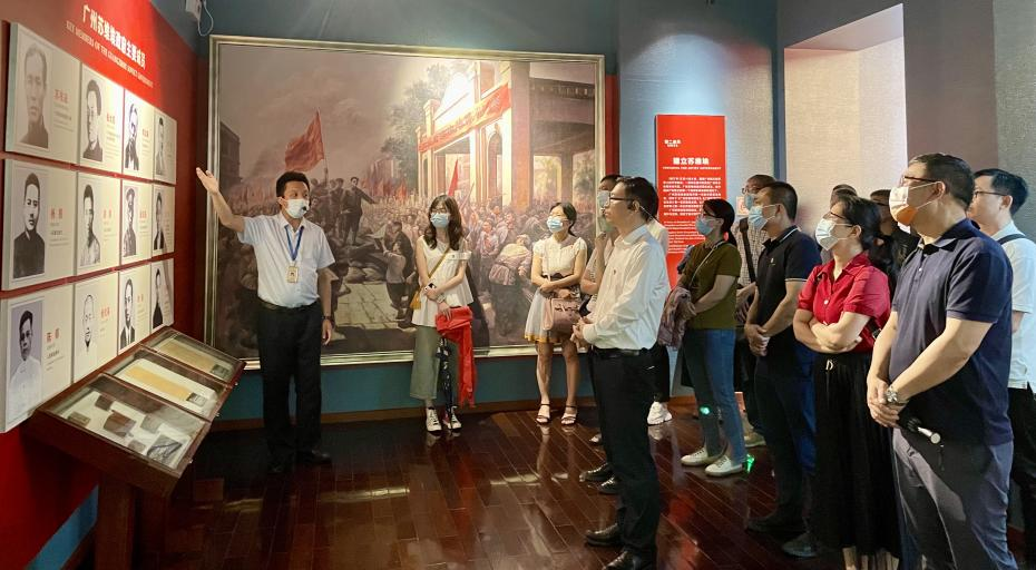 活动中,全体党员干部共同参观了广州起义纪念馆。广州起义纪念馆被誉为“东方巴黎公社”,是由张太雷、叶挺、叶剑英等领导发动广州起义而建立的苏维埃政府所在地,是感受红色故事、传承红色基因的重要载体。大家怀着崇敬之心,跟随讲解员的步伐,走进黄墙白雕凸字门楼,细听讲解员讲述先烈革命故事,参观馆内历史图片、文字资料、历史场景、影像视频、革命文物等,在实地研学中重温红色记忆,追溯信仰之源,进一步感悟思想伟力,补足精神之“钙”,争做党的创新理论的坚定信仰者和忠实践行者,以更加昂扬的姿态走好新时代赶考之路。